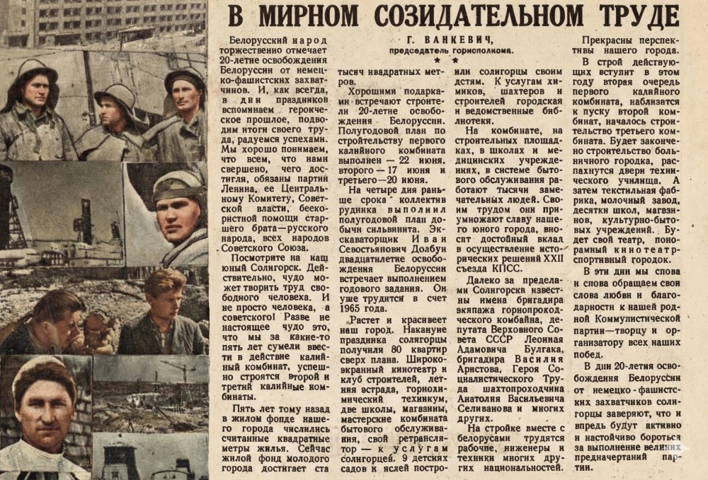 Главная 1962-1964 Друзья Солигорска Великая Отечественная война 1962 Маркавец, І. Аб чым гаворыць выстаўка бытавых вырабаў / І. Маркавец // Будаўнік камунізма. — 1962. — 4 верасня. — С.4. Некрашэвіч, Т. Дамавыя камітэты / Т.Некрашэвіч // Будаўнік камунізма. — 1962. — 20 верасня. — С.2. Некрашэвіч, Т. Дамавыя камітэты / Т.Некрашэвіч // Будаўнік камунізма. — 1962. — 20 верасня. — С.2. Паўлоўская, Н. Выстаўка мэблі / Н.Паўлоўская // Будаўнік камунізма. — 1962. — 20 кастрычніка. — С.4. — С.2. Пятровіч, М. Новы маршрут / М. Пятровіч // Будаўнік камунізма. — 1962. — 31 ліпеня. — С.4 1963 Васілевіч, А. Ветэраны будоўлі вялікай хіміі / А.Васілевіч // Будаўнік камунізма. – 1963. – 17 жніўня. – С.3 лепшыя будаўнікі Салігорска – Іван Чабатар, Анатолій Бялько, Васіль Нікіценка Мішкевіч, І.Працоўныя перамогі савецкіх будаўнікоў / І.Мішкевіч // Будаўнік камунізма. – 1963. – 10 жніўня. – С.3. Новых працоўных перамог вам, салігорцы! // Будаўнік камунізма. — 1963. — 17 снежня. — С.2. Першая чарга Салігорскага камбіната ў страі // Будаўнік камунізма. — 1963. — 17 снежня. — С.1. Польскія госці наведалі Салігорск // Будаўнік камунізма. — 1963. — 19 верасня. — С.1. Уласаў, М. Расце наш горад юны / М.Уласаў // Будаўнік камунізма. — 1963. — 10 жніўня. — С. 2 1964 Ванкевич, Г. В мирном созидательном труде / Г.Ванкевич // За коммунистический труд. – 1964. – 4 июля. – С.1. Антилевский, Ч. Шестой август Солигорска / Ч.Антилевский // За коммунистический труд. – 1964. – 9 августа. – С.1. Город, в котором мы живём // За коммунистический труд. — 1964. — 23 мая. — С.1 Далидович В. Наши традиции / В.Далидович // За коммунистический труд. – 1964. – 23 мая. – С.2. Дубовский, Г. В добрый путь молодожены! / Г.Дубовский // За коммунистический труд. – 1964. – 22 августа. – С.2. ЗАГС г.Солигорска Новік, У. Шахцёрская слава / У. Новік // Будаўнік камунізма. — 1964. — 18 лютага. — С.1. Анатоль Селіванаў Почетная грамота – солигорцам // За коммунистический труд. – 1964. – 4 апреля. – С.1. Прямое дело горисполкома // За коммунистический труд. – 1964. – 28 ноября. – С.2. Смирнов, А. Шофёров стало больше / А. Смирнов // За коммунистический труд. – 1964. – 19 декабря. – С.2. Спірын, Ф. Праца і быт непадзельны / Ф.Спірын // Будаўнік камунізма. — 1964. — 12 сакавіка. — С. 2. Традиция крепнет // За коммунистический труд. – 1964. – 3 октября. – С.2. ЗАГС У прэзідыуме Вярхоўнага Савета СССР // Будаўнік камунізма. — 1964. — 18 лютага. — С. 1.