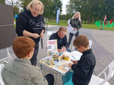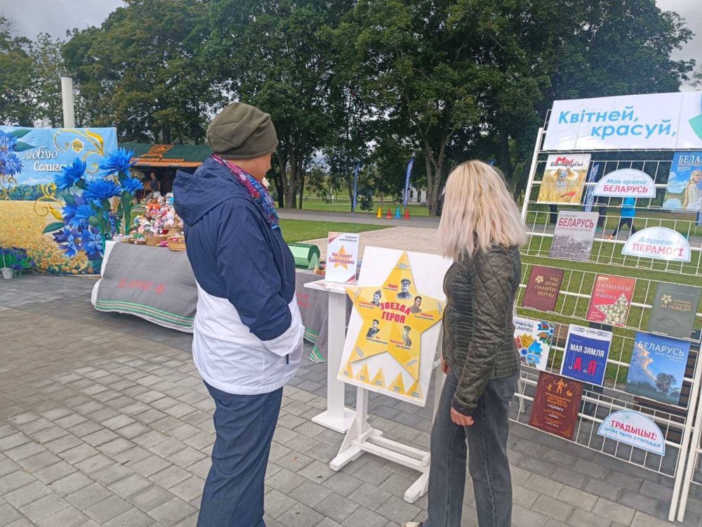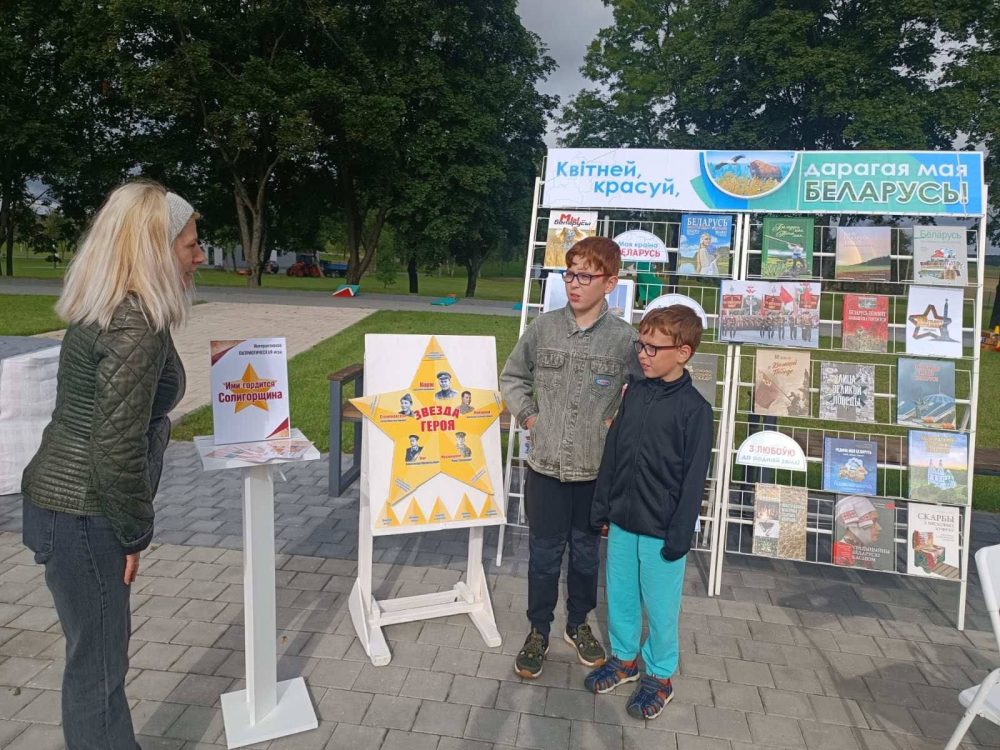 Здесь можно было познакомиться с книгами о юных разведчиках и партизанах, собрать пазлы военной техники, принять участие в патриотической игре «Звезда героя», посвященной Героям СССР, уроженцам Солигорского района.