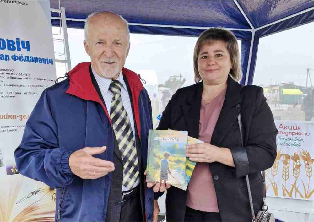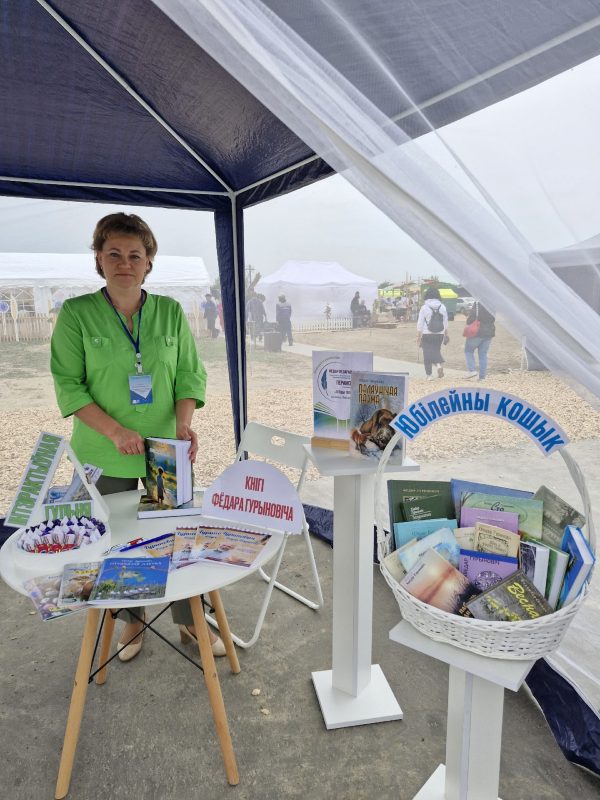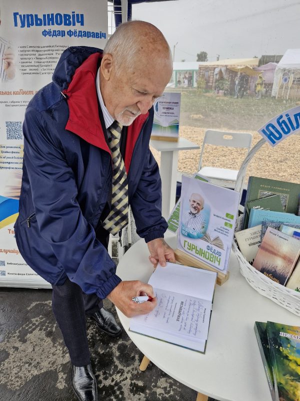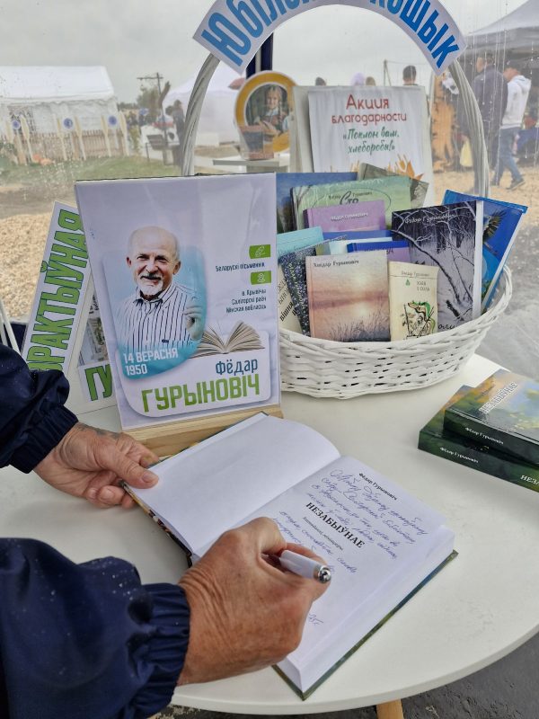 На інтэрактыўнай бібліятэчнай пляцоўцы «Хлебнае поле Салігоршчыны», прысвечанай раённаму фестывалю-кірмашу «Дажынкі-2025», адбылася аўтограф-сесія пісьменніка-земляка Ф.Ф. Гурыновіча.