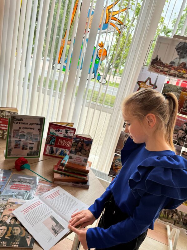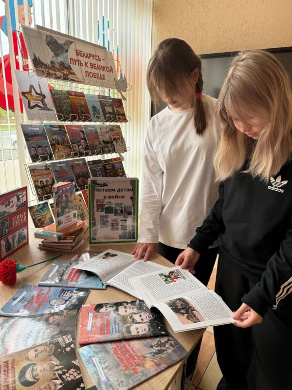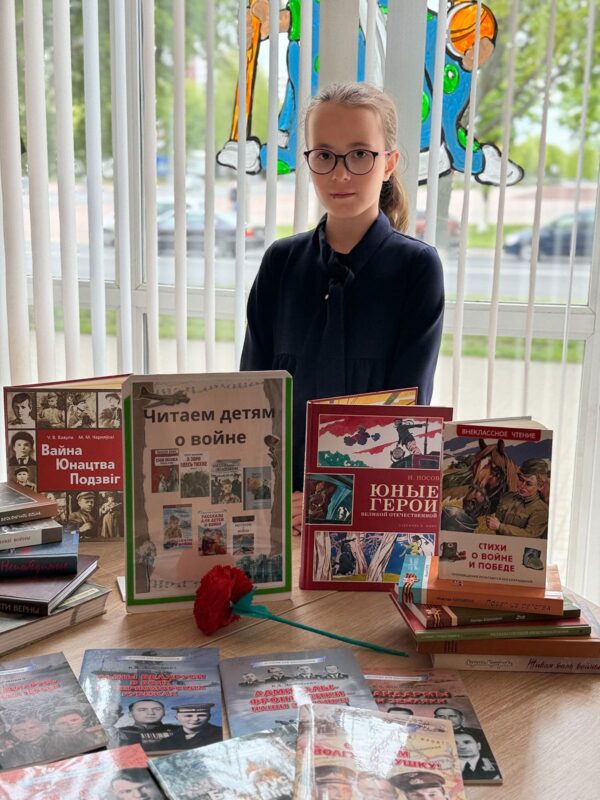 К акции была оформлена книжная выставка «Беларусь — путь к Великой Победе», на которой были представлены произведения о войне, о Победе, о детях войны. В завершении акции ребята с большим интересом познакомились с книгами о войне.