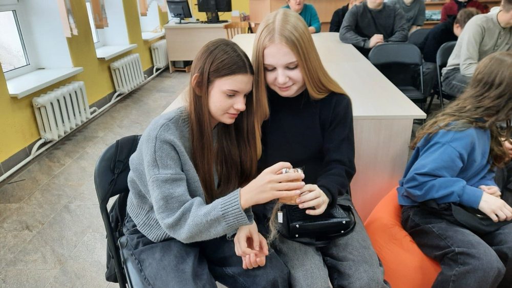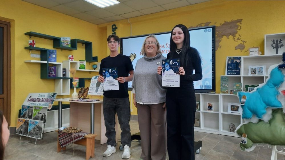 4 ноября в районной центральной библиотеке для старшеклассников ГУО «Гимназия №2 г.Солигорска» прошел активити-рассказ «ПО СПИРАЛИ СОЛИГОРСКОГО ВРЕМЕНИ». Библиотекари познакомили учащихся с краеведческим проектом «Хатка.BY», рассказали про солигорские неведанные чудеса: млын, вьюны и маску Деда-Предка. Поучаствовали в ЭТНОвикторине «Космас вясковой хаты». Самые активные были награждены дипломами. Очень трогательная получилась встреча!