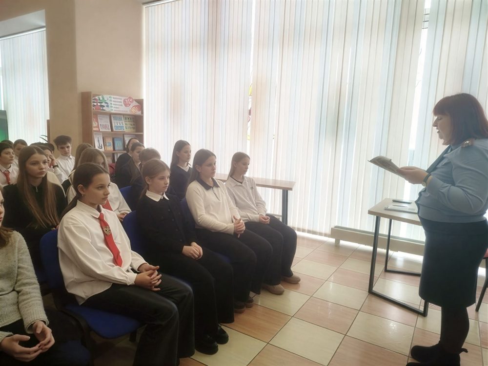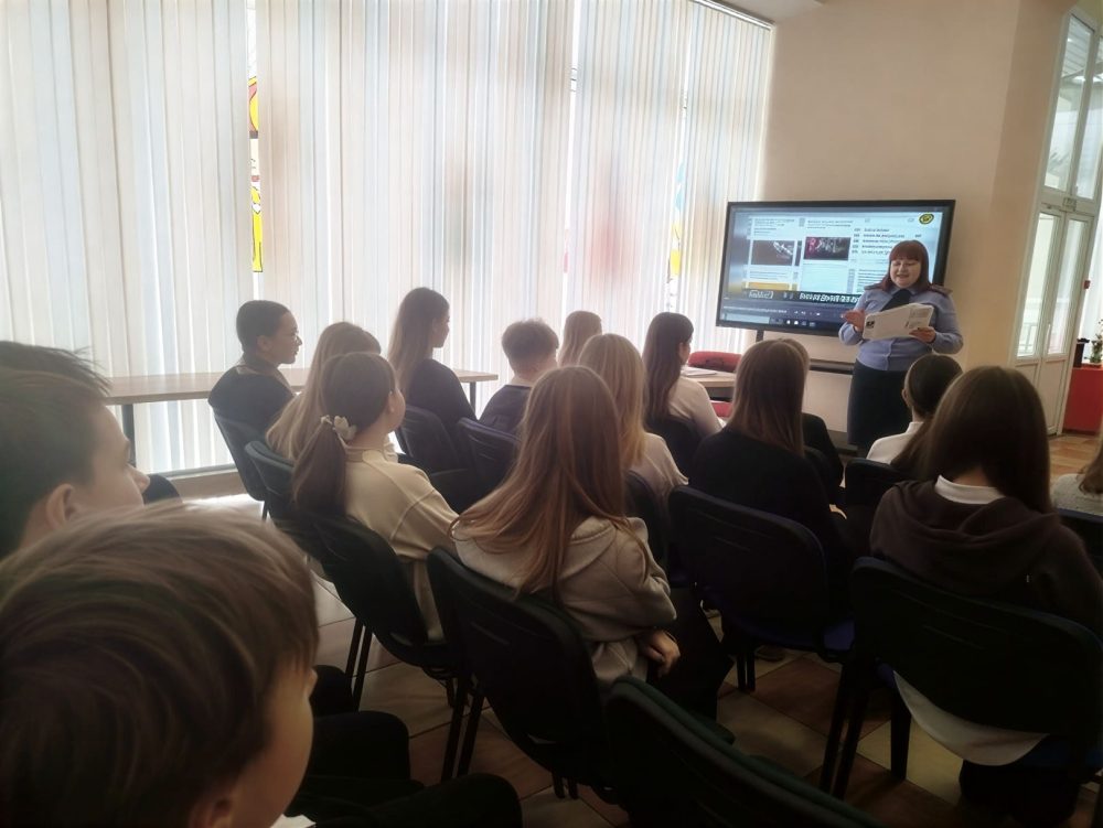 5 февраля в районной детской библиотеке в рамках межведомственной профилактической акции «Дружим с Законом!» для учащихся 6 «Б» и 6 «Г» классов ГУО «Средняя школа №4 г.Солигорска» прошел актуальный разговор «Подросток — правовая ответственность». Сотрудник инспекции по делам несовершеннолетних Солигорского РОВД Малахова Ирина Александровна рассказала учащимся об административной и уголовной ответственности среди подростков за хулиганские проступки, оскорбление личности, мошенничество. Также разговор шел о курении вейпов. Дети посмотрели фильм «Первая жертва вейпинга», где рассказывалось о случае смерти 16-летней девушки у нас в стране. Целью мероприятия было объяснить подросткам, что ответственность — это неотъемлемая часть взросления и свободы.