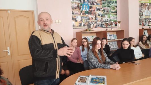 Три месяца поисков, проживаний темы, поездок, эмоций и встреч. И хорошо, что мероприятие состоялась накануне восьмого марта, потому что это был эмоциональный рассказ о Женщине, рисующей будущее, и Мужчине, понявшем женскую суть. А главный герой встречи — преподаватель колледжа Владимир Ломейко. Он воспел Алену Киш в своих скульптурах – посвящениях и поразил когда-то дипломную комиссию целым фейерверком своих работ в различных техниках, рассказывающих о художнице, чье имя вошло во Всемирную энциклопедию наивного искусства. А затем подарил их Музею маляванки в Заславле и Слуцкому краеведческому музею. И надгробие на могиле Алены Киш – его. Вот таков он – наш талантливый земляк- солигорчанин.