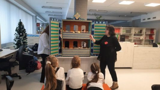 Неугомонные библиотекари привезли из экспедиции на родину обряда сценарий, стали на время координаторами будущей постановки. А затем пришли в школу. Позитивный получился день. С одной стороны праздничный. С шутками. Удивлением. Ребячьими улыбками. С первыми шагами в роли артистов батлейки.
