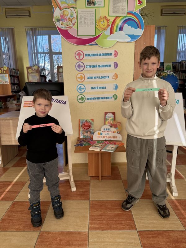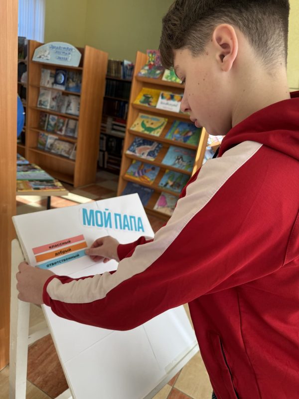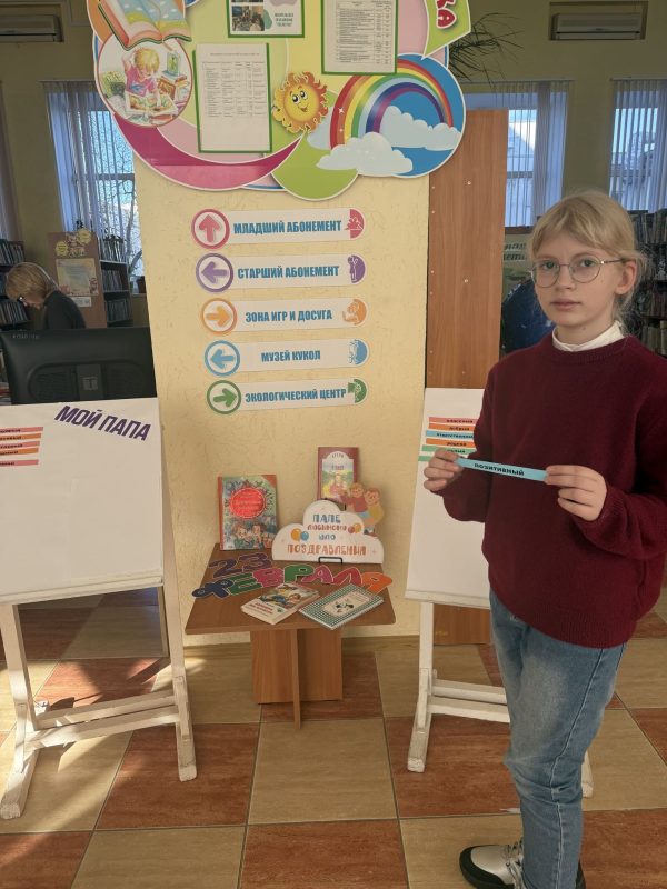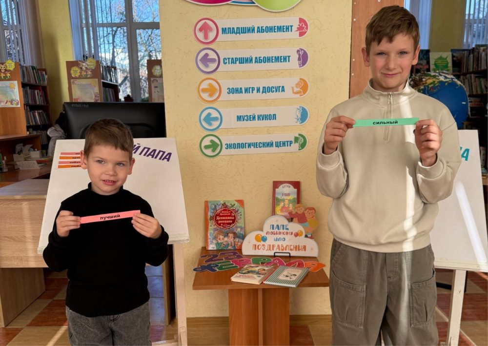 Библиотекари знакомили читателей с историей праздника, рассказывали о его значимости и важности, о почётной миссии защитника Отечества. Предлагали поучаствовать в интерактивной игре – выбрать из предложенных качеств мужчины те, которыми обладает их отец, и приклеить на доску «Мой папа». Также вниманию посетителей была представлена книжная выставка «На страже Родины любимой».
