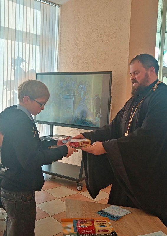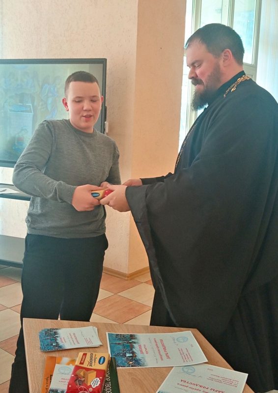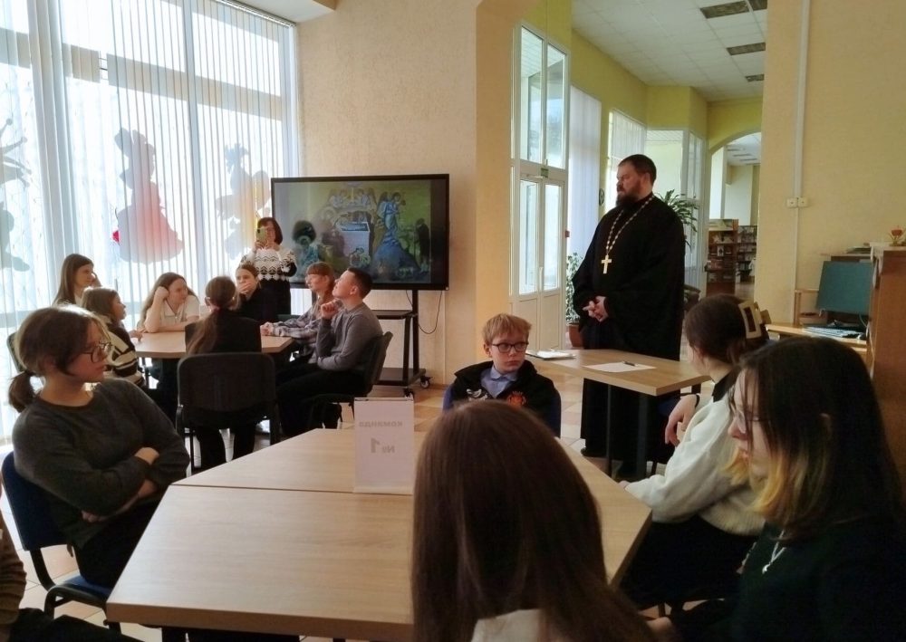 20 января в районной детской библиотеке в рамках проекта «Живой источник веры» прошел библиоквиз «Звезда спасения зажглась». Мероприятие было организовано при поддержке иерея Дмитрия Новикова, настоятеля храма святителя Николая Чудотворца г. Солигорска. Две команды учащихся 8 «Г» и 8 «Д» классов ГУО «Средняя школа №3 г.Солигорска» отвечали на вопросы, посвященные празднику Рождества Христова. Священник поблагодарил всех за активное участие в игре, вручил каждой команде памятные дипломы и подарки.