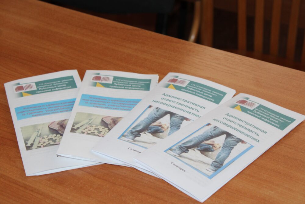16 февраля в районной центральной библиотеке прошел час актуальной информации «Подросток. Преступление. Закон» в рамках межведомственной профилактической акции «Дружим с законом!». На мероприятие были приглашены учащиеся 1 курса филиала БНТУ «Солигорский государственный горно-химический колледж». Молодые люди узнали об уголовной и административной ответственности несовершеннолетних, о последствиях от употребления алкогольных и наркотических средств. Устимова Елена Ивановна, нотариус нотариальной конторы Солигорского района, рассказала какие сделки или действия могут совершать дети до достижения 18-летнего возраста (можно ли им подарить дорогой подарок, могут ли они принять наследство, составляется ли на их имя завещание и др.), какую ответственность по ним они будут нести.