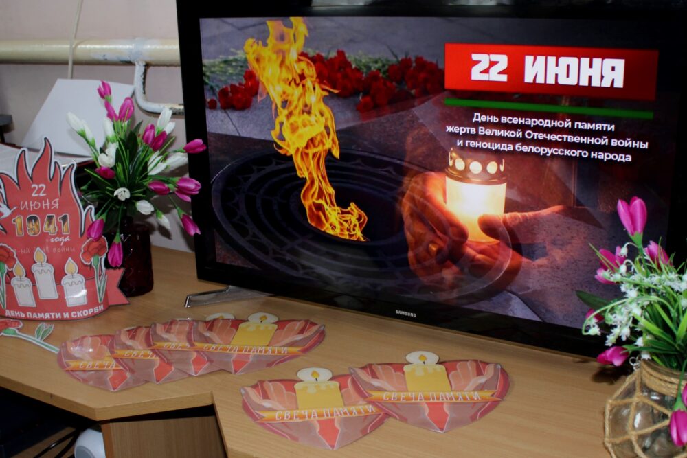 Мероприятие началось с минуты молчания, которой участники почтили память миллионов погибших в годы войны. Библиотекарь рассказала о трагических событиях 22 июня 1941 года, о героизме и мужестве советского народа, о невосполнимых потерях, которые понесла Беларусь в результате немецко-фашистской оккупации.