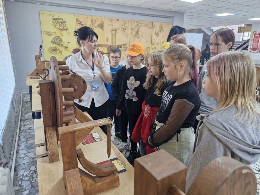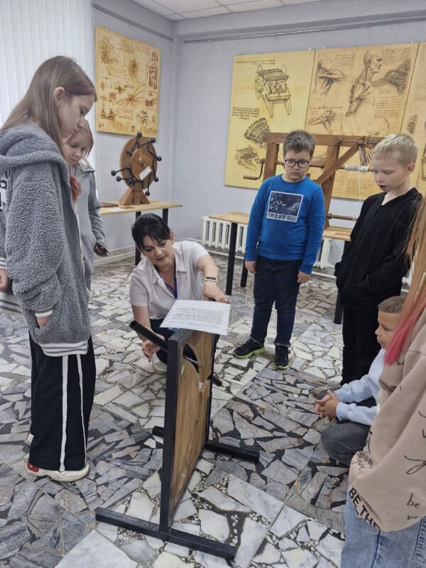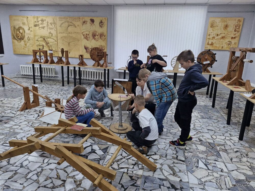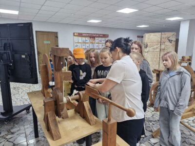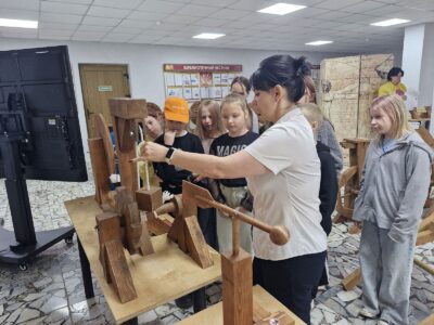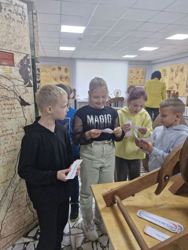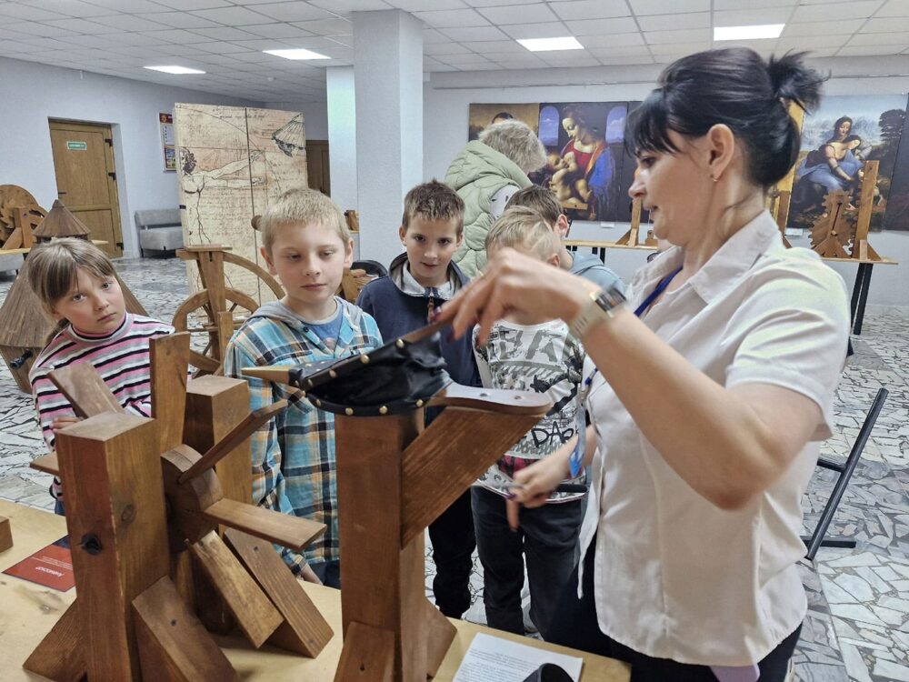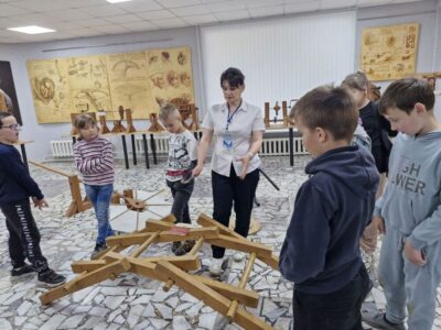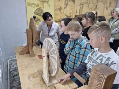 В летнее время библиотекари Солигорской районной центральной библиотеке для ребят, посещающих школьные лагеря, организуют интересный образовательный досуг. Школьников знакомят с экспозицией «Музей изобретений Леонардо да Винчи».