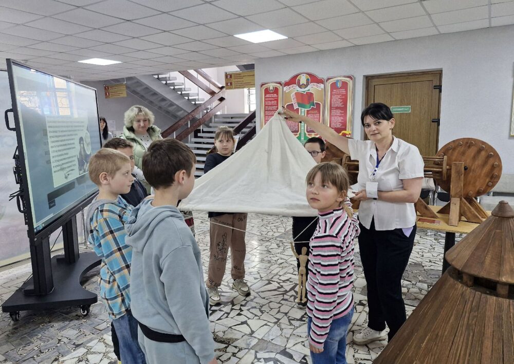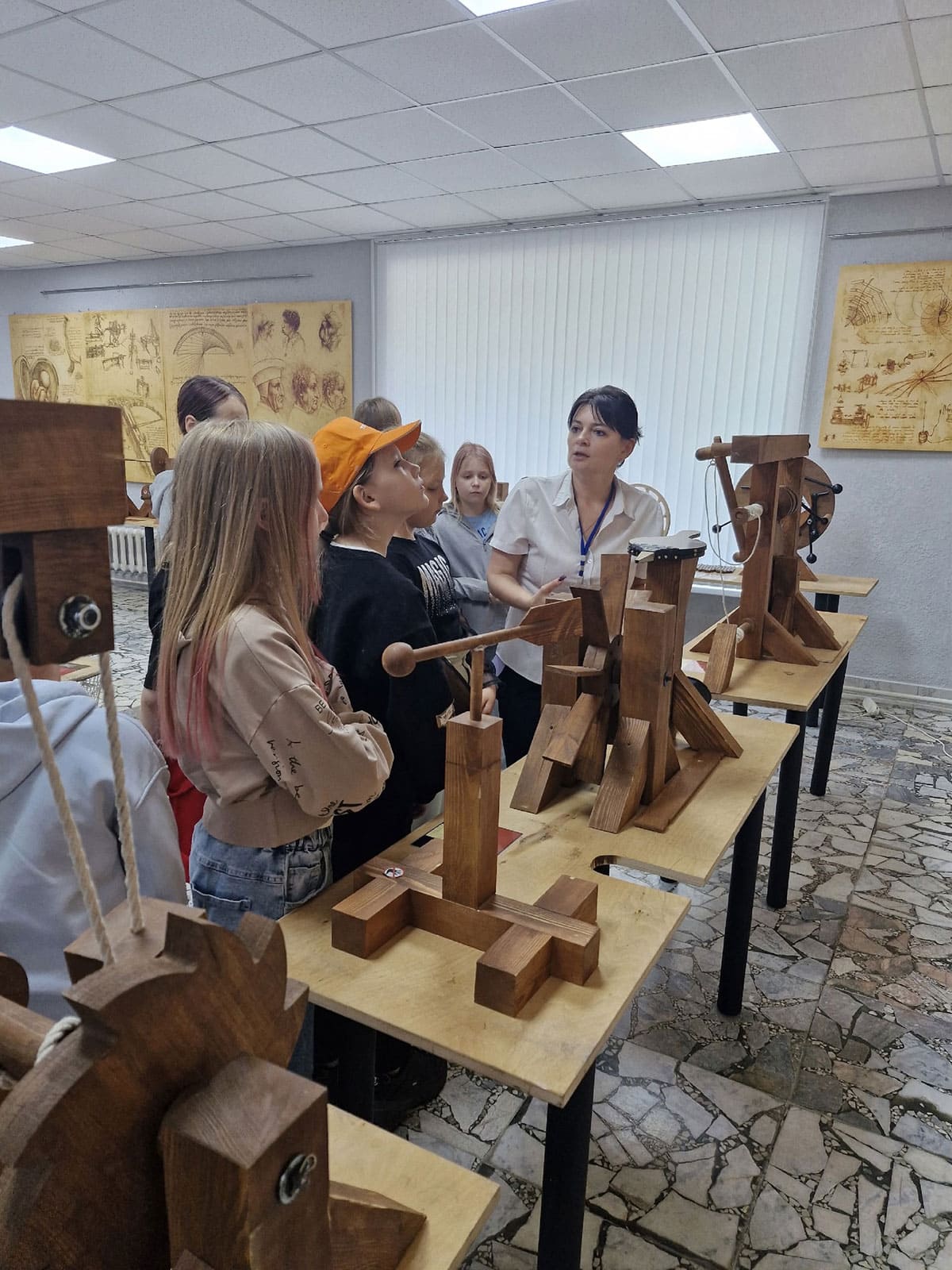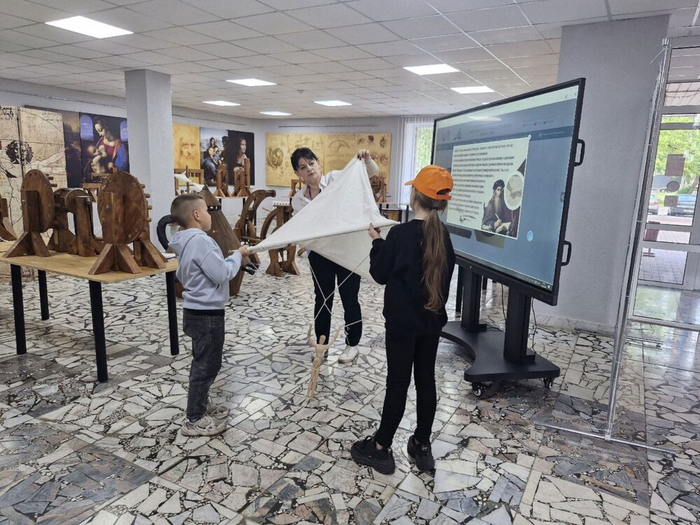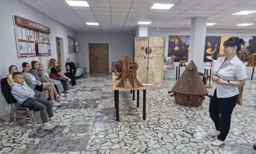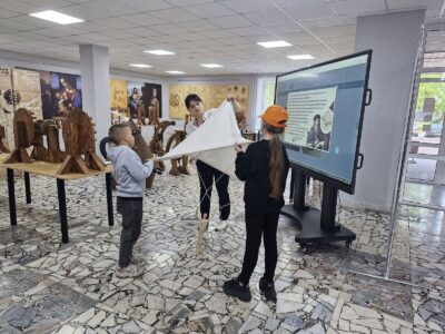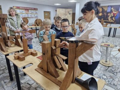 В летнее время библиотекари Солигорской районной центральной библиотеке для ребят, посещающих школьные лагеря, организуют интересный образовательный досуг. Школьников знакомят с экспозицией «Музей изобретений Леонардо да Винчи».