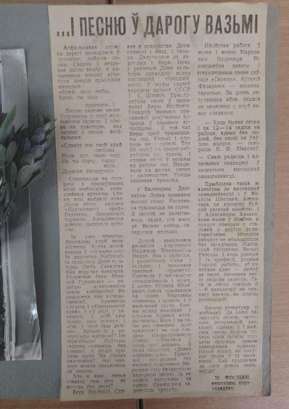 Матэрыялы і фотаздымкі аб дзейнасці калектыву сабраны ў альбоме «Умеем ли мы отдыхать?», які знаходзіцца ў бібліятэцы. Удзельнікі мерапрыемства пазнаёміліся з матэрыяламі газетных артыкулаў і фотаздымкамі тых часоў.