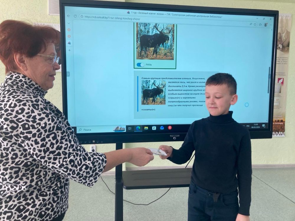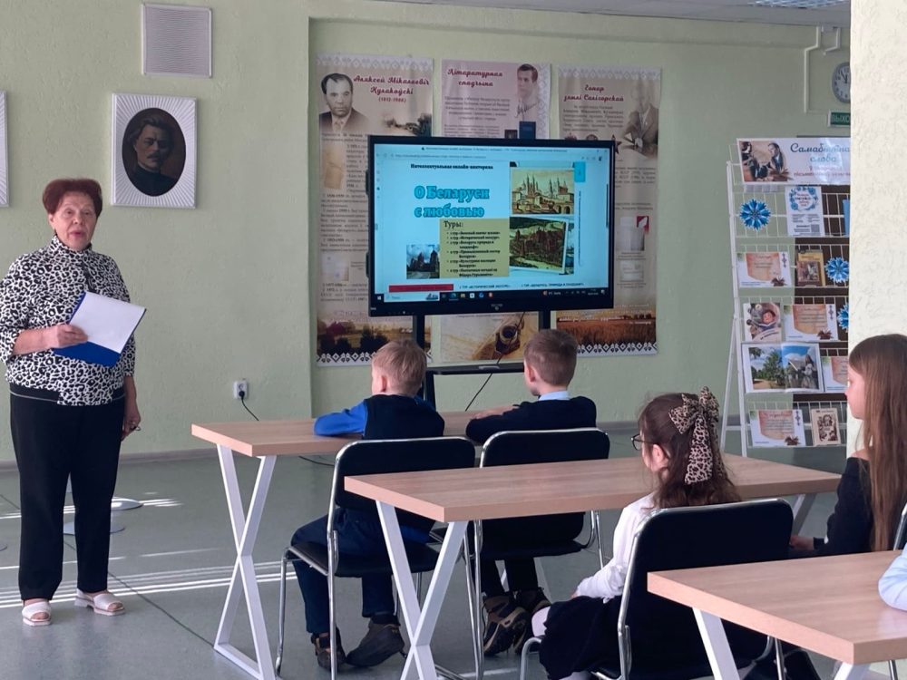 Беларусь – край голубых озёр, реликтовых лесов, уникальных заповедников, великолепных замков, сказочных дворцов, ухоженных усадеб, величественных храмов, роскошных музейных комплексов… Прекрасная, воспетая поэтами земля. С богатой историей, самобытной культурой и неповторимой природой. Всё это досталось нам в наследство от предков и является национальным достоянием. Главной задачей нашего мероприятия «Вандроўка па краіне Беларусь», которое прошло 6 марта в читальном зале библиотеки, стало стимулирование заинтересованности ребят к более внимательному изучению нашей истории, культуры, природоведения. Мы не просто информировали учащихся ГУО «Гимназия №3 г. Солигорска» о примечательных фактах о Беларуси, а старались вызвать искренний интерес, предложив интерактив.