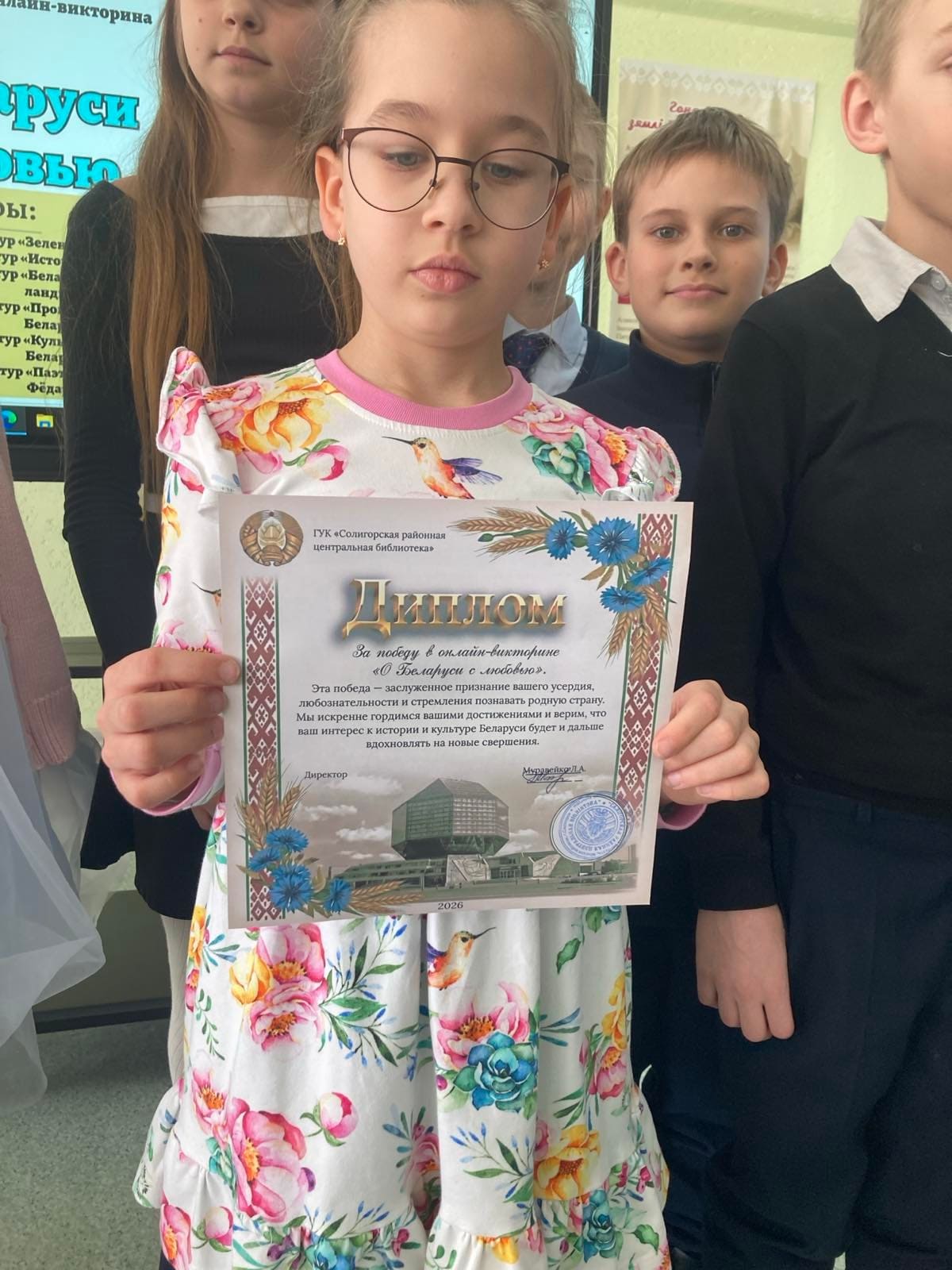 Ребята приняли участие в увлекательной онлайн- викторине «О Беларуси с любовью». Интеллектуальная игра дала отличную возможность проверить свои знания об истории, культуре, обычаях и символах нашей родины, а также узнать много нового и интересного в дружелюбной атмосфере. Победителям были вручены памятные дипломы.