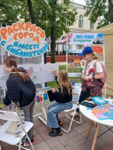 Библиотекари ГУК «Солигорская районная центральная библиотека» в рамках фестиваля представили интерактивную площадку «Солигорск – территория гостеприимности», где рассказывали о своем городе и его достопримечательностях, предлагали поучаствовать в «Чаепитии с гением» и творческом интерактиве «Раскрась город вместе с библиотекой». Для ребят прошла увлекательная игра-викторина «Пословица не даром молвится».