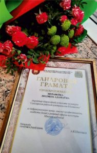 Почётной грамотой главного управления культуры награждена Муравейко Людмила Адамовна, директор ГУК «Солигорская районная центральная библотека».