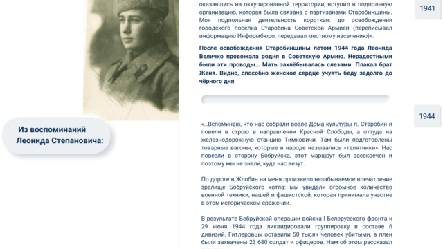 Известные люди, судьбой связанные со Старобинщиной, которые оставили заметный след в истории. Материал содержит фотоснимки, биографию, вклад в развитие края, библиографические списки. В данный период осуществляется постепенное наполнение серии.