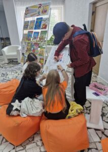 2 июня сотрудники Солигорской районной центральной библиотеки подготовили для учащихся ГУО «Гимназия №2 г. Солигорска» книгопортацию «Веселись, играй и книгу не забывай»! На каждом этаже библиотеки для ребят были организованы тематические площадки.