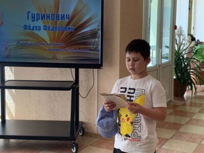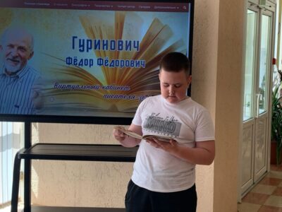 6 июня в районной детской библиотеке прошёл литературный конкурс чтецов стихотворений Ф.Ф. Гуриновича «Адкрытая душа мая ўсім», посвященный 75-летнему юбилею писателя-земляка, члена Союза писателей Беларуси, почетного гражданина Солигорского района, победителя Национальной литературной премии Беларуси в номинации «Лучшее произведение поэзии» за книгу «Паляўнічая паэма». В конкурсе приняли участие учащиеся школьного оздоровительного лагеря ГУО «Средняя школа №14 г.Солигорска». Всего выступило 10 учащихся. Были прочитаны стихи «Буду касманаўтам», «Сінічка», «Павуковы красёнцы», «Сонечны зайчык», «Зваршчык» и другие из книги Ф.Ф. Гуриновича «Пасадзім па дрэўцу».