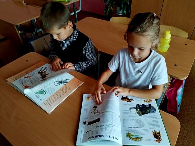 Школьники с интересом рассматривали яркие энциклопедии из фонда библиотеки, участвовали в увлекательных конкурсах: «Хвостатая викторина», «Волшебное превращение», отгадывали загадки и вспоминали сказки, где героями являются животные.