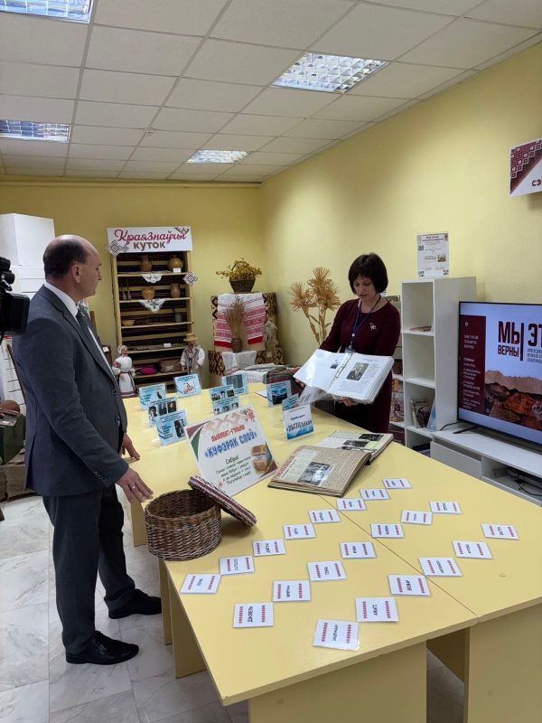 В праздничный день библиотеку посетили Анатолий Михайлович Лодыга, председатель Солигорского районного исполнительного комитета, и Татьяна Анатольевна Кирбай, начальник управления идеологической работы, культуры и по делам молодёжи. Почётных гостей познакомили с новой тематической локацией, созданной специально к юбилею и посвящённой истории населённого пункта.