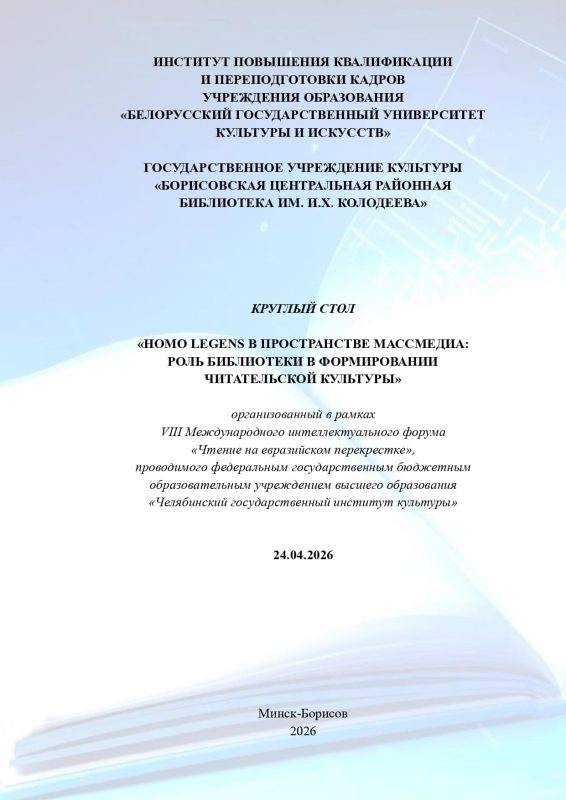24 апреля 2026 года Наталья Сергеевна Кагитина, заведующий отделом автоматизации библиотечных процессов ГУК «Солигорская районная центральная библиотека», приняла участие в работе круглого стола «HOMO LEGENS В ПРОСТРАНСТВЕ МАССМЕДИА: РОЛЬ БИБЛИОТЕКИ В ФОРМИРОВАНИИ ЧИТАТЕЛЬСКОЙ КУЛЬТУРЫ». Мероприятие состоялось в рамках VIII Международного интеллектуального форума «Чтение на евразийском перекрестке».