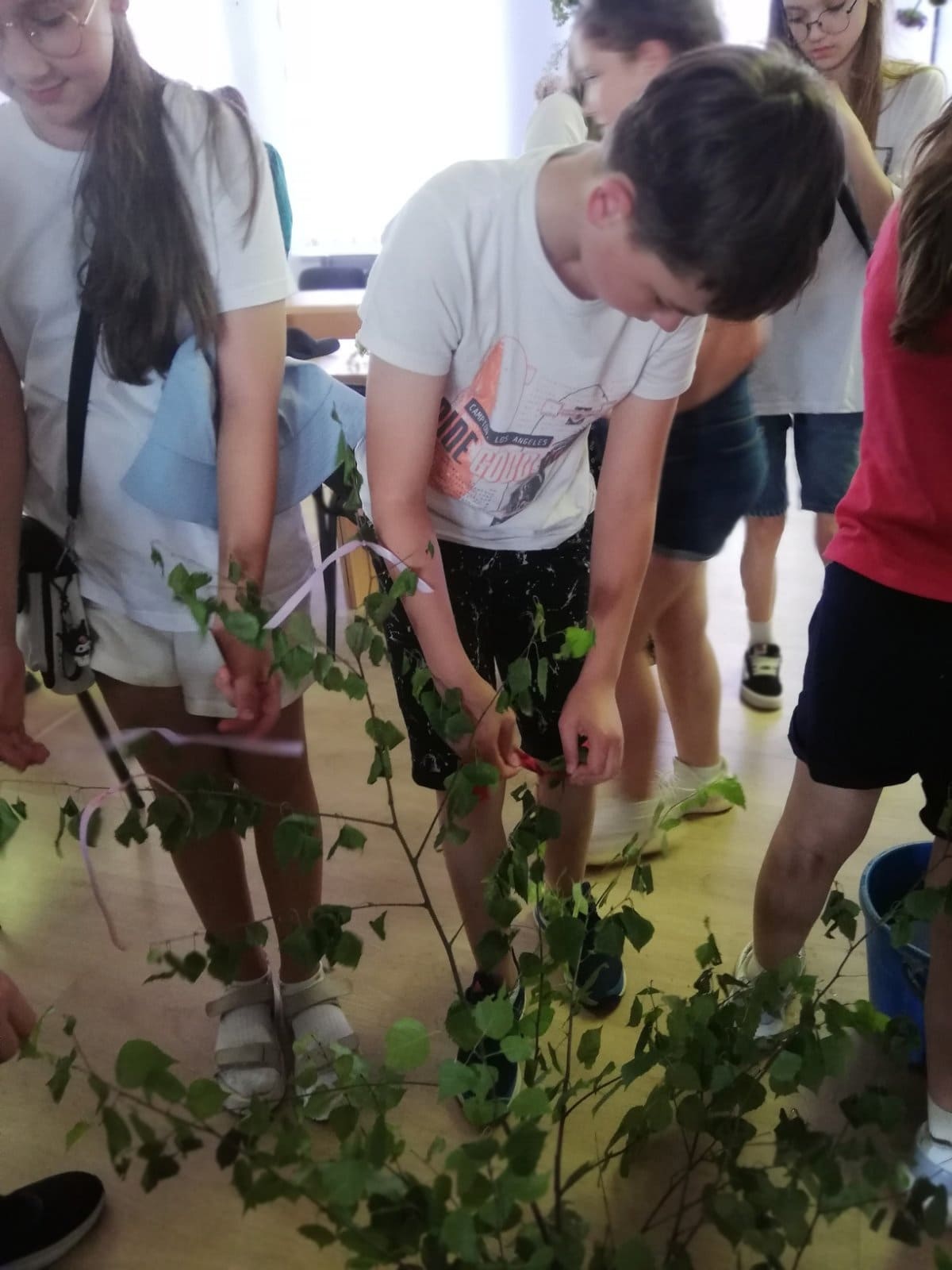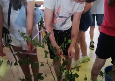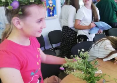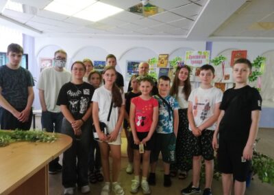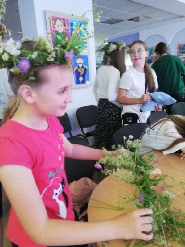 Затем учащиеся 10 класса ГУО «Средняя школа № 11 г. Солигорска» и ребята, посещающие летний лагерь при ГУДО «Центр творчества детей и молодежи Солигорского района», приняли активное участие в конкурсах «Сплети венок», «Заплети косу» и поиграли в очень интересную и весёлую игру «Колечина-малечина». Завершилось мероприятие украшением атласными лентами веточки берёзы и загадыванием желания.