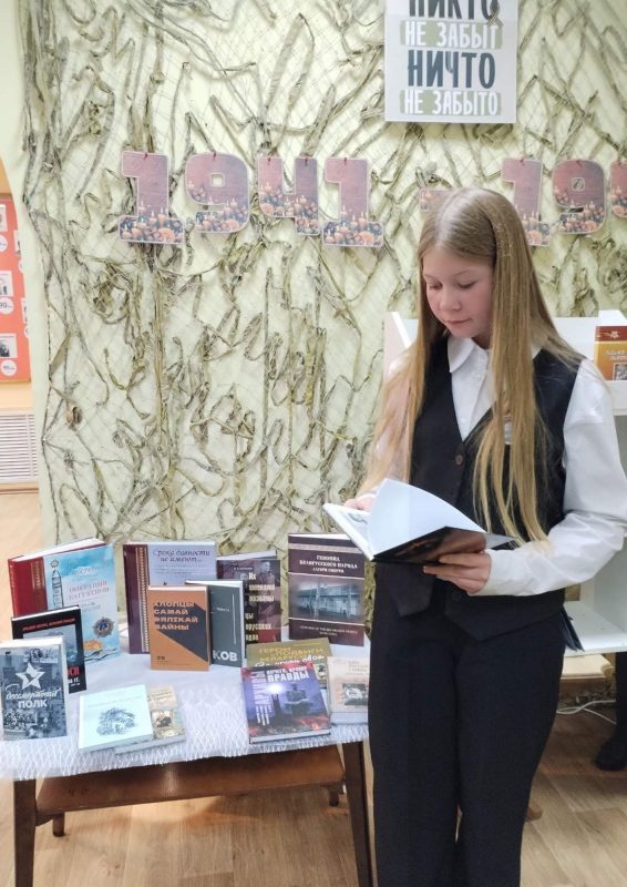 В торжественном событии приняли участие учащиеся ГУО «Старобинская средняя школа Солигорского района». Высокие гости рассказали ребятам о книгах, посвященных героизму людей, которые сражались за свою страну в годы Великой Отечественной войны. Мероприятие дополнил мультимедийный обзор литературы «Мы читаем книги о войне», подготовленный Александрой Александровной.