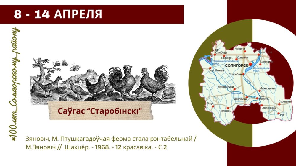 А прочитать об истоках птицеводства в Солигорском районе можно в статье газеты «Шахцёр» за 1968 год. Как разводили птиц, чем кормили, как росла рентабельность и прибыль, все это вы узнаете из статьи М. Зеновича рассказывающей о Старобинской птицефабрике.