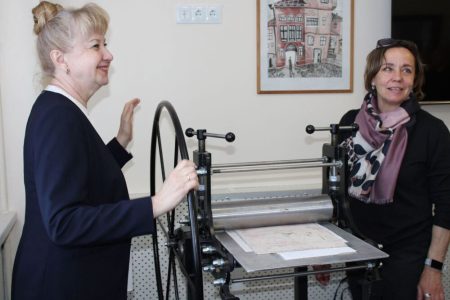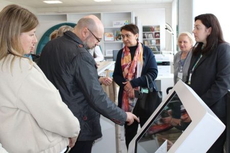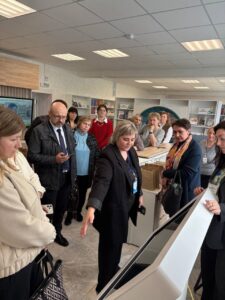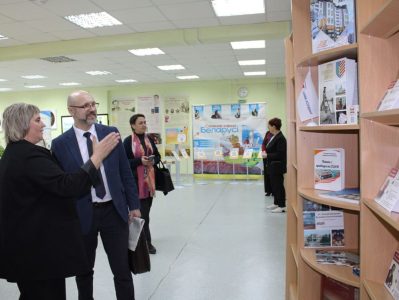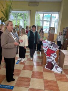 Большой интерес вызвало посещение районной центральной библиотеки. Директор Людмила Муравейко провела экскурсию по библиотеке, познакомила с деятельностью структурных подразделений, рассказала о международном сотрудничестве и проектной деятельности библиотеки. В ходе экскурсии гости познакомились с интересным иммерсивным краеведческим проектом «Хатка.BY».
