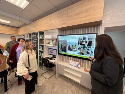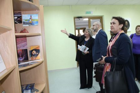 Гости познакомились с современной городской библиотекой №2. Библиотека оснащена новейшим оборудованием, что позволяет реализовать интересный проект «Точка Роста». Здесь можно увидеть микромир при помощи современного микроскопа и постигать тайны нашей планеты, используя интерактивный глобус. Библиотечное пространство с легкостью трансформируется под мероприятия любой тематики (кинозал, игровая зона, творческая лаборатория и др.).