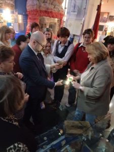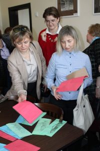 В завершение состоялся круглый стол «Деятельность библиотеки в эпоху социокультурных трансформаций». С приветственным словом к участникам обратился Пшибытко Виктор Викентьевич, заместитель генерального директора Национальной библиотеки Беларуси по информационным ресурсам и обслуживанию пользователей. Виктор Викентьевич передал в дар Солигорской библиотеке более 80 книг социально-значимой тематики. Буйчик О.Н., заведующий сектором формирования электронных коллекций отдела формирования электронной библиотеки центра оцифровки и обеспечения сохранности библиотечных документов ГУ «Национальная библиотека Беларуси», рассказала о электронной библиотеке Национальной библиотеки Беларуси. Корнейчук Н.В., заведующий сектором мониторинга и координации деятельности библиотек научно-исследовательского отдела библиотековедения ГУ «Национальная библиотека Беларуси» представила доклад «Сетка публічных бібліятэк Рэспублікі Беларусь: асноўныя тэндэнцыі развіцця».