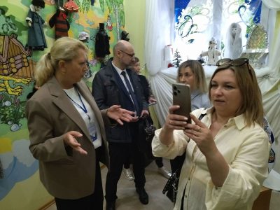 Далее участники областной Школы директора посетили районную детскую библиотеку. Сотрудники библиотеки поделились опытом работы с детским пользователем, рассказали о проекте «Книжное зёрнышко», который направлен на формирование интереса к книге с детства, о работе кукольного театра библиотекарей «Забава», представили музей кукол и выставочные площадки.