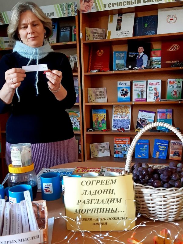 В этот день в Старобинской горпоселковой библиотеке прошла акция-поздравление «Живите долго и счастливо». Каждый читатель старшего поколения, посетивший библиотеку, получил от библиотекаря небольшой сувенир и тёплые слова поздравления.