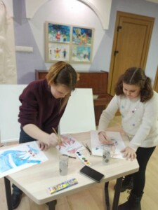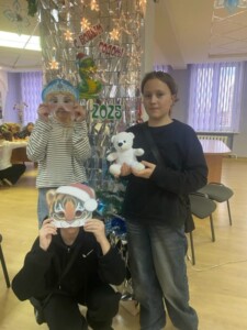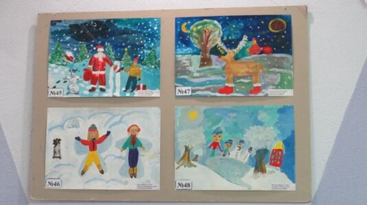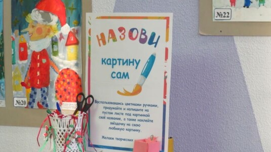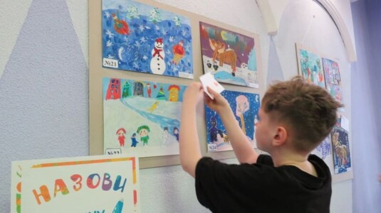 Для детей были подготовлены: мастер-класс «Дед Мороз из ладошки», игра-викторина «Зима», а также конкурс «Назови картину сам», в котором нужно было придумать и написать свое название под понравившейся картиной, а затем приклеить звёздочку.
