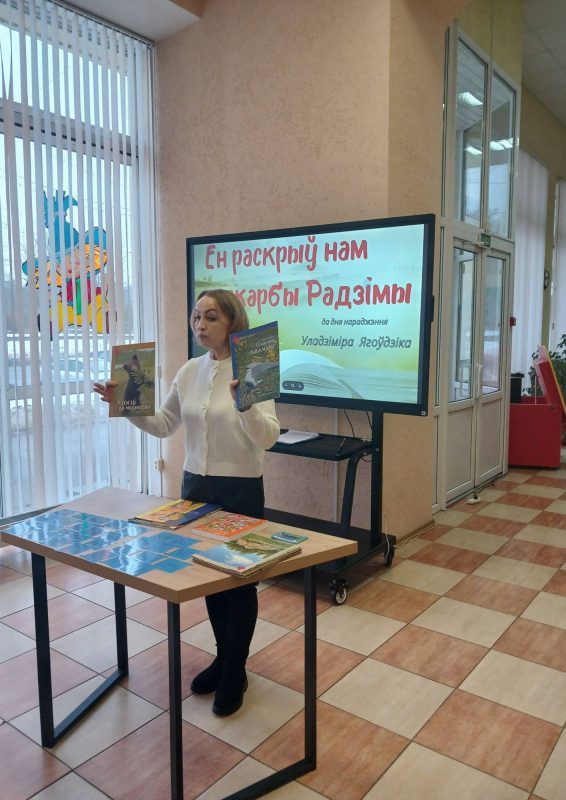 13 лютага для юных чытачоў раённай дзіцячай бібліятэкі прайшло падарожжа па творчасці «Ен раскрыў нам скарбы Радзімы», прысвечанае 70-годдзю з дня нараджэння беларускага пісьменніка Уладзіміра Іванавіча Ягоўдзіка.