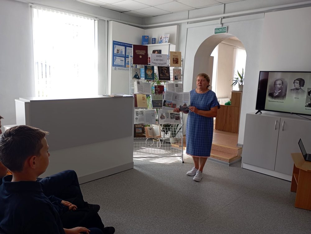 На мерапрыемстве бібліятэкар пазнаёміла вучняў з некаторымі эпізодамі з жыцця і творчасці выдатных дзеячаў старажытнага пісьменства і кнігадрукавання — Францыска Скарыны, Сымона Буднага, Кірылы Тураўскага і Міколы Гусоўскага.