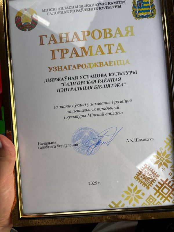 Это событие стало подтверждением того, что библиотечное дело Солигорского района развивается благодаря таланту, преданности и неустанному труду его работников. Высокая награда — заслуженная оценка их вклада в сохранение и приумножение культурного богатства региона.