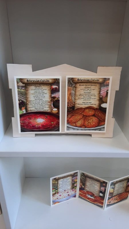Подиум-открытка «Тое, што натхняе бясконца» – назвали организаторы свою тематическую подборку и предложили вниманию посетителей коллекцию библиотечного иммерсивного краеведческого проекта «Хатка BY». Собрана она была в течение нескольких лет реализации проекта. С большинством художников и дизайнеров, эти открытки создавшими, авторы проекта хорошо знакомы. Наверное, поэтому выставка и получилась милой и уютной, прекрасно оформленной. Все эти открытки – с белорусскими мотивами. Все они созданы молодыми графиками и это свидетельствует о том, что молодежь ищет новые формы идентичности – от хороводов на фестивалях и переосмысления эстетики белорусской глубинки, до создания вот таких вот удивительных открыток, которые содержат яркую рисованную информацию о нашем культурном коде.