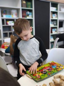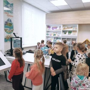 Дошколята из ГУО «Ясли-сад №31 г. Солигорска» впервые посетили обновленную библиотеку. Библиотекарь рассказала ребятам о библиотеке, познакомила с интересными, красочными, увлекательными книжками и журналами, предложила поиграть в настольные игры, сложить пазлы. Огромный интерес у детей вызвали микроскоп, интерактивный стол и глобус.