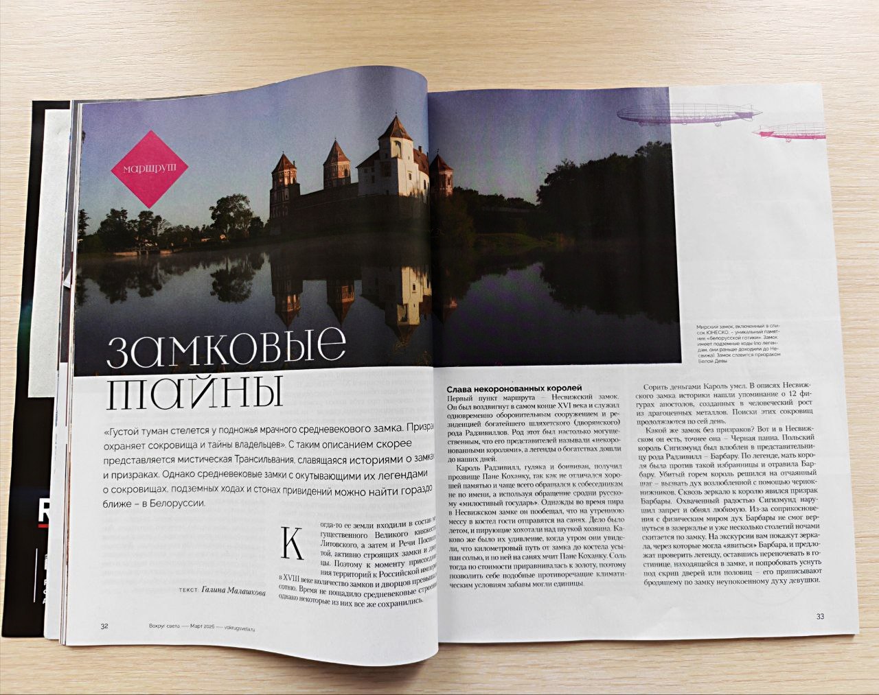 В февральском номере «Вокруг света» обратите внимание на статью о наших, белорусских замках. «Замковые тайны» раскрывает автор Галина Малашкова для российских туристов. А мы радуемся многочисленным гостям, привлекая экскурсионными турами, богатой культурой, замками и природой. Добро пожаловать к нам, в Беларусь!