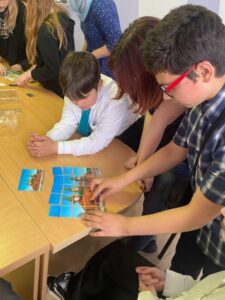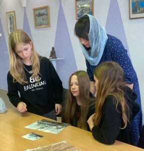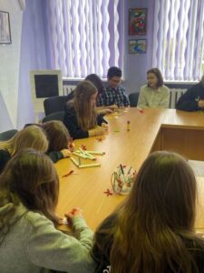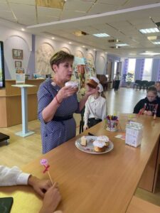 Юная поэтесса Ливета рассказала свою историю о том, как она познакомилась и узнала о происхождении праздника. Далее ребятам был продемонстрирован видеоролик «Пасха в картинах русских художников» и проведена игра-викторина на мультиборде «Православные храмы Солигорска». Особый интерес у ребят вызвал командный конкурс по собиранию пазлов «Церкви Солигорска». Победители конкурса получили сладкие подарки. Продолжением вечера стал мастер-класс по изготовлению и раскрашиванию пасхальных яиц из бумаги, который был не только интересен, но и познавателен для ребят.