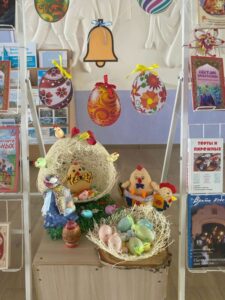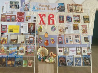 К мероприятию была подготовлена книжная выставка «Славься, светлая Пасха!», на которой были представлены православные книги и журналы «Радость», «Фома», «Планета семья», «Ступени».