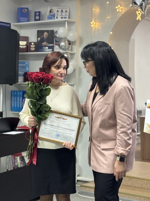 В торжественной обстановке она зачитала Благодарность, адресованную коллективу от Игоря Александровича Марзалюка, председателя Постоянной комиссии по образованию, культуре и науке Палаты представителей Национального собрания Республики Беларусь.