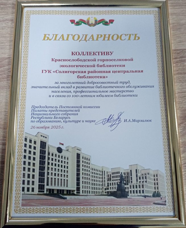 «100 лет: Краснослободская горпоселковая экологическая библиотека отметила вековой юбилей»Репортаж Солигорского телевизионного канала