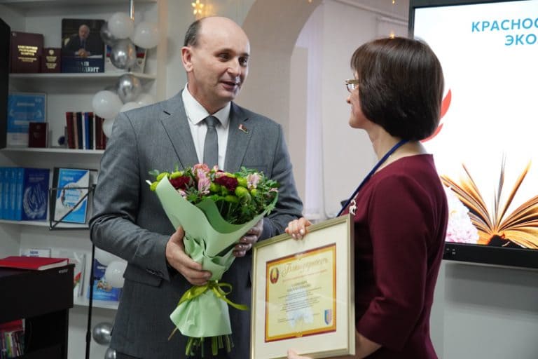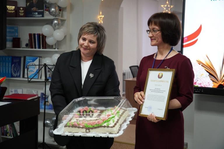 Благодарность коллективу Краснослободской горпоселковой библиотеки вручила Муравейко Людмила Адамовна, директор ГУК «Солигорская районная центральная библиотека».