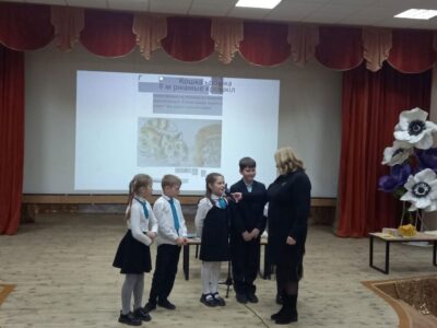 Школьники поблагодарили Инну Николаевну за чудесное мероприятие, которое прошло на одном дыхании, живо и весело, преподнесли ей букет роз и вручили на память солигорский сувенир.