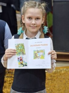Инна Николаевна пишет на русском и белорусском языках. Она подготовила для ребят путешествие по своим книгам «Самы лепшы дзень», «Залатыя рыбкі» и «Вясковыя вакацыі»: читала из них отрывки, рассказывала забавные истории, происходящие с главными героями. Ребята с удовольствием повторяли четверостишия и скороговорки, отгадывали смешные загадки, придуманные автором, дружно участвовали в сочинении сказки про хитрую кошку. За быстрые и верные ответы дети получали призы-бонусы, а в конце встречи гимназисты могли сфотографироваться с автором и приобрести книги с автографом.