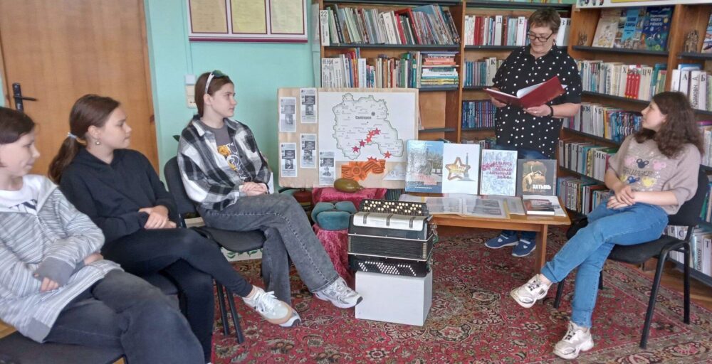 4 мая в Долговской сельской экологической библиотеке прошел урок мужества «Фронтовые подвиги наших земляков». В ходе мероприятия ребята узнали о героях-земляках, проявивших мужество, отвагу, героизм на полях сражений Великой Отечественной войны, о тех, кто стойко перенёс все тяготы фронтовой жизни. Просмотрели фотографии и фронтовые награды, которыми они были награждены.