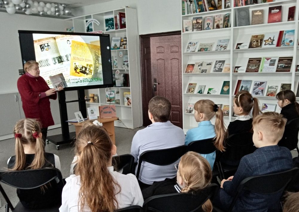 Наталья Николаевна познакомила учащихся с книгой В. Вавуло «Маленькие солдаты большой войны». В этот сборник включено более 200 рассказов о судьбах юных героев Великой Отечественной войны. В ней рассказывается о наших героях-земляках: Олеге Вабищевиче, Николае Бане, Леониде и Викентии Сороко. С их судьбами и подвигами библиотекари познакомили ребят на мероприятии.