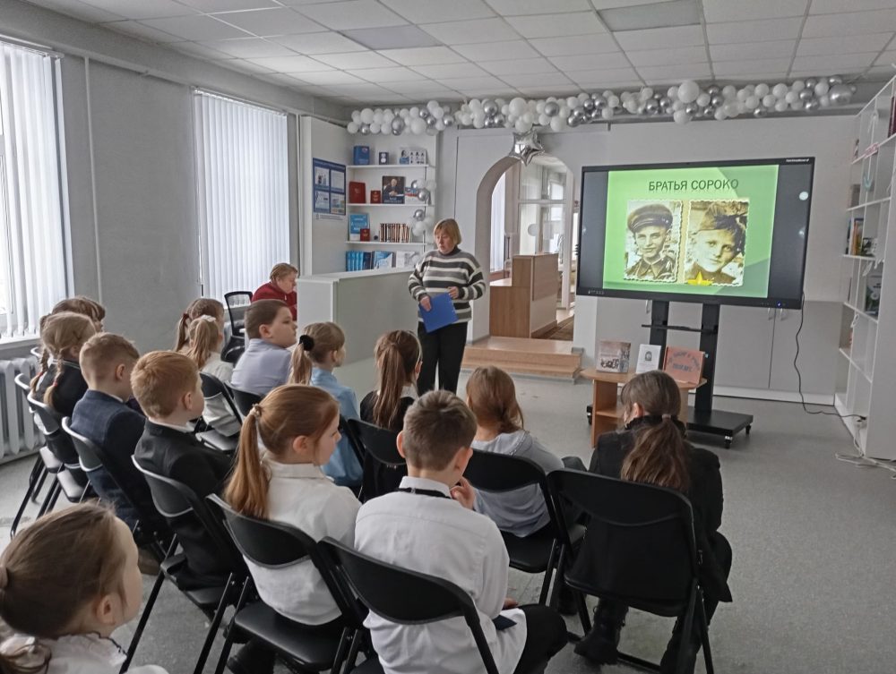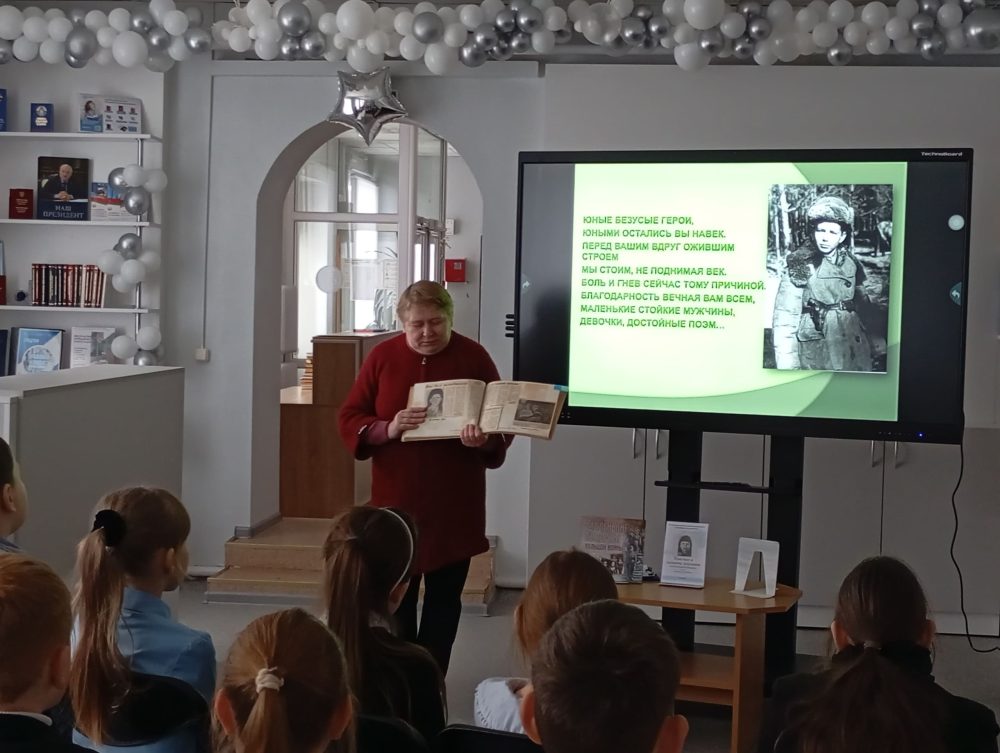 Ко Дню памяти юного героя-антифашиста для учащихся 4 «А» класса ГУО «Краснослободская средняя школа Солигорского района» в Краснослободской горпоселковой экологической библиотеке прошел урок мужества «Маленькие герои большой Победы».
